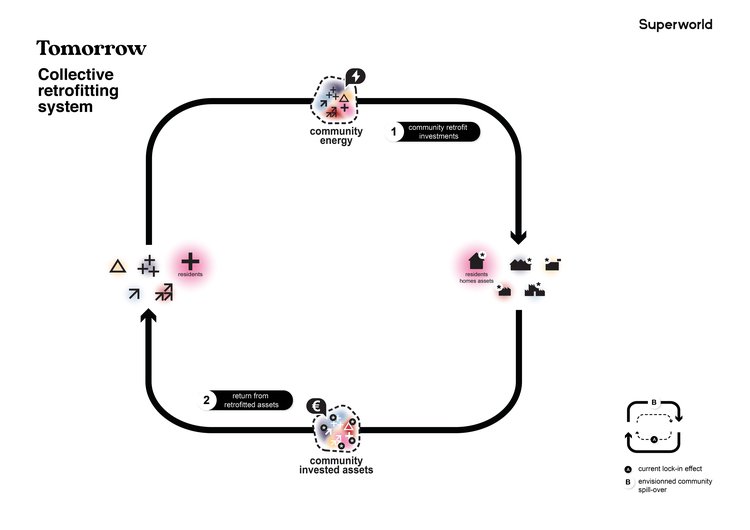 In 2020, Superworld conducted a research for the International Architecture Biennale Rotterdam 2020 designing the necessary building block to reframe individual energy consumed in homes as a common resource. It aims to create the institutional and cultural elements to shift from individualized responsibilities to collective energy transition.
